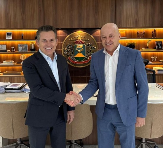 Mauro Mendes passa a faixa de governador para Otaviano Pivetta no dia...
