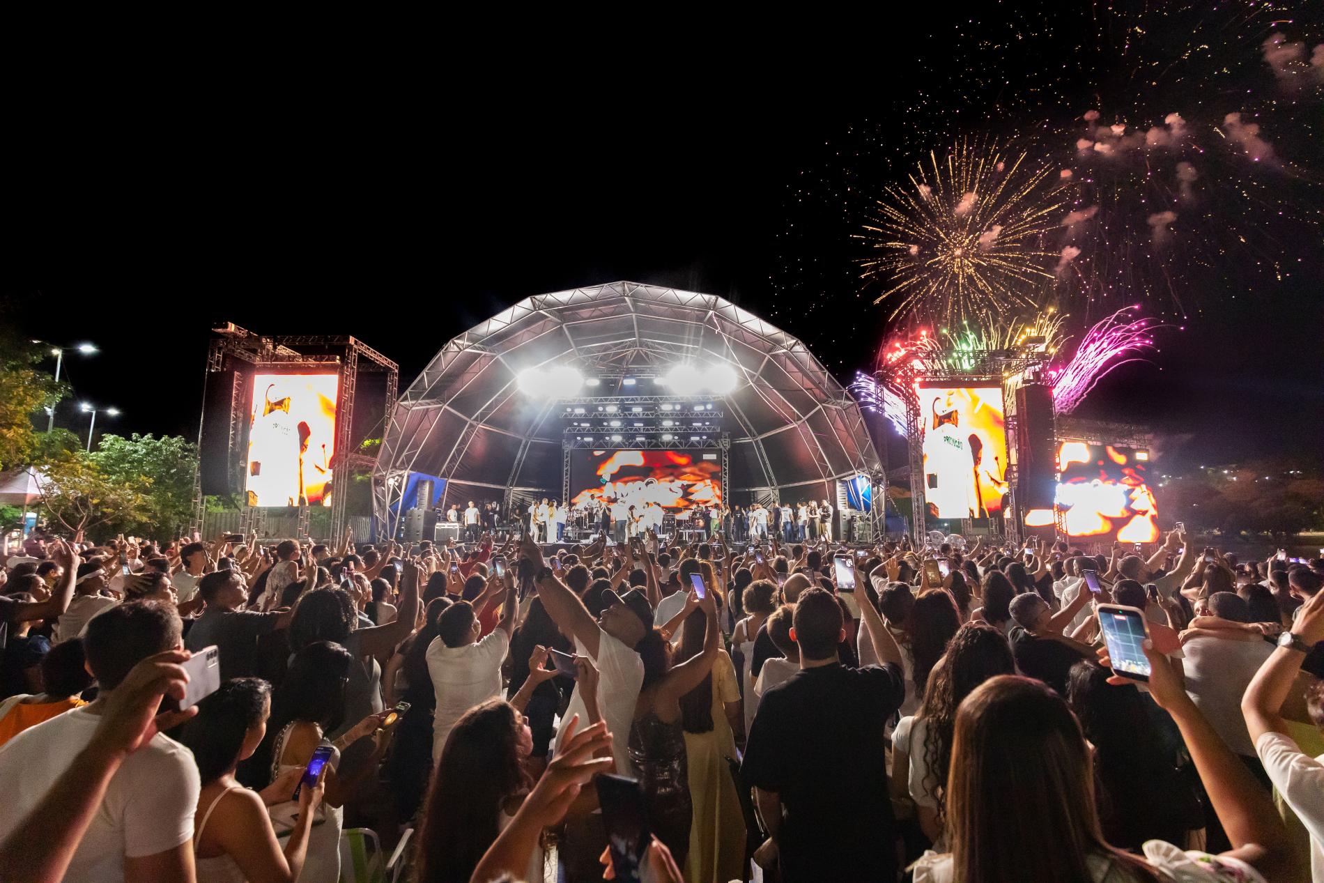Dona Deise Maria Auxiliadora, moradora do Jardim Imperial, acompanhou sentada, ao lado do esposo, cada apresentação de louvor e música cristã, além da contagem regressiva para a virada, que foi encerrada com o show da cantora Fernanda Brum. Segundo ela, a tranquilidade foi o principal destaque. “É um ambiente seguro, dá para agradecer a Deus e ficar até meia-noite com calma. Isso faz toda a diferença”, disse.