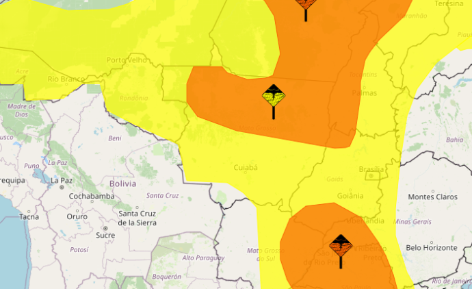 Inmet alerta para temporais com chuvas intensas e ventos fortes em MT